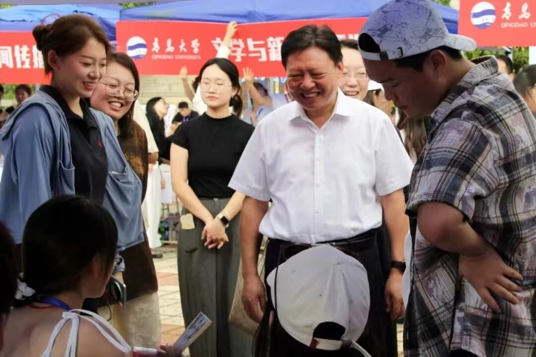 “同学来自哪里?”“宿舍网络还顺畅吗?”“空调效果如何?”“食堂口味合不合?”每进一间宿舍,张奎勤书记都摸摸被褥厚度、试试空调温度、看看插座安全,叮嘱大家“把青大当成第二个家”。
