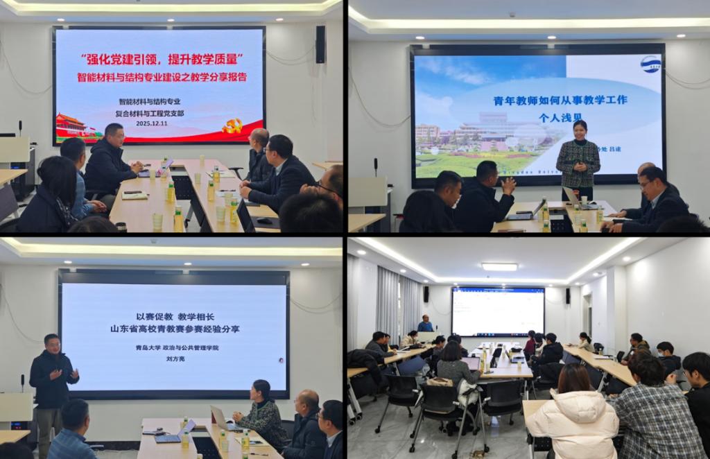 为深入落实立德树人根本任务,持续提升人才培养质量,助力青年教师发展,学院智能材料与结构系与复合材料与工程党支部于12年11日在慎思楼308会议室联合举办教学专题分享会。会议邀请秀色直播